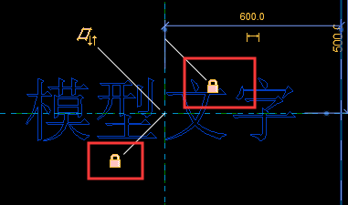 2、放置模型文字,并將模型文字與參照線鎖定,水平方向與垂直方向都鎖 定,如圖所示。