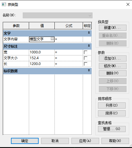 7、將模型文字族文件中的文字內容和文字大小參數關聯到族文件中。