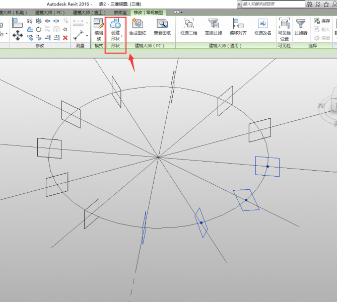 7、載入之前做的自適應族,將其放置在圓與直徑所有交點處,放置好后還需要將一部分旋轉30°和60°,如圖所示。