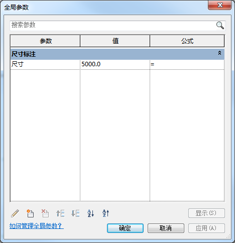 2、打開(kāi)后進(jìn)入“全局參數(shù)”面板,可以新建、編輯和調(diào)整全局參數(shù),此處新建一個(gè)全局參數(shù),命名為“尺寸”,如圖所示。