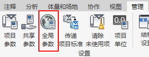 1、點(diǎn)擊“管理”選項(xiàng)卡下的“全局參數(shù)”命令,如圖所示。