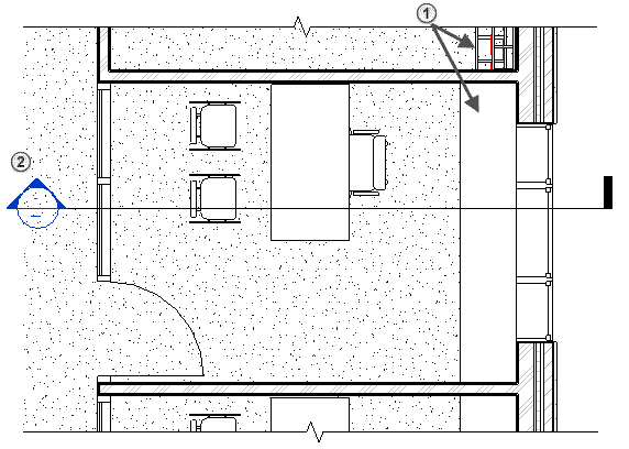 僅當當前視圖的規程與目標視圖匹配時,視圖標記(該符號用于指示剖面、立面和詳圖索引)才會顯示在視圖中。 請參見下面的示例。