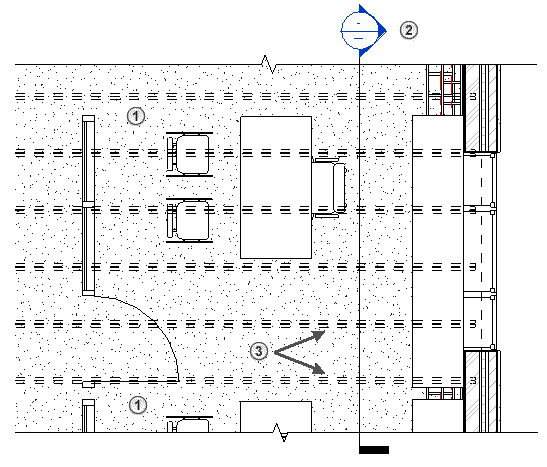 “規程”屬性設置為“結構”的剖面視圖的標記顯示。 該平面不顯示已指定給其他規程的視圖標記。
