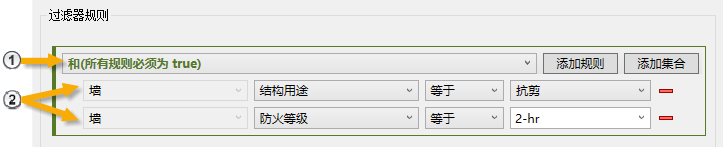 例如,要創(chuàng)建可識別 2 小時防火等級門的過濾器,請選擇“門”類別。要創(chuàng)建可識別 2 小時防火等級門和墻的過濾器,請選擇“門”和“墻”類別。