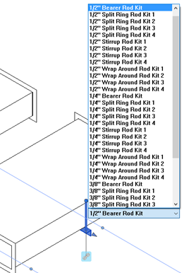 如果支架支撐桿已在輔助工具包(如 1/2" 支座桿工具包)中指定,則在 Revit 中,可單擊支撐桿直徑并在下拉列表中選擇新的輔助工具包(桿尺寸),以選擇新的支撐桿直徑。