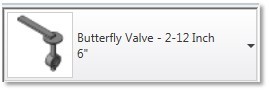 此示例使用蝶閥構件,其 Revit 族名稱為“蝶閥 - 2 -12 英寸”,類型為 6”,如下面的類型選擇器中所示。