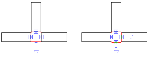 單擊加號可添加支架。在上例中,彎頭升級為 T 形三通。 如果將風管連接到 T 形三通的開放支架,剩余可能的支架會帶有加號,如右側的 T 形三通連接件所示。