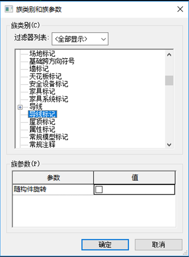 2、打開后首先將其族類別改為所需要的類別,這里是在導線中添加的共享參數,因此選擇的是“導線標記”類別,如圖所示。