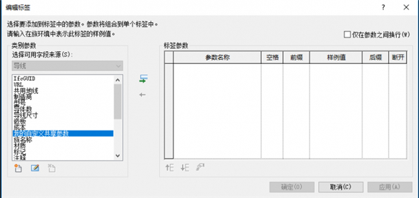 6、可以注意到,左邊所列出的參數是沒有自定義的共享參數。需要點擊左下角的“添加參數”按鈕,將添加到了項目中的共享參數添加到此處,如圖所示。