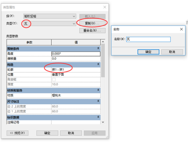 3、將瓦族載入到項目中,在建筑選項卡下選擇豎梃,編輯矩形豎梃,**類型改為瓦,將輪廓改為族1,也就是瓦族,如圖所示。