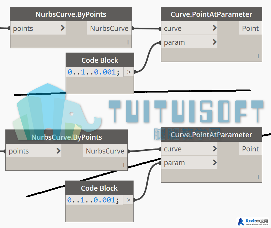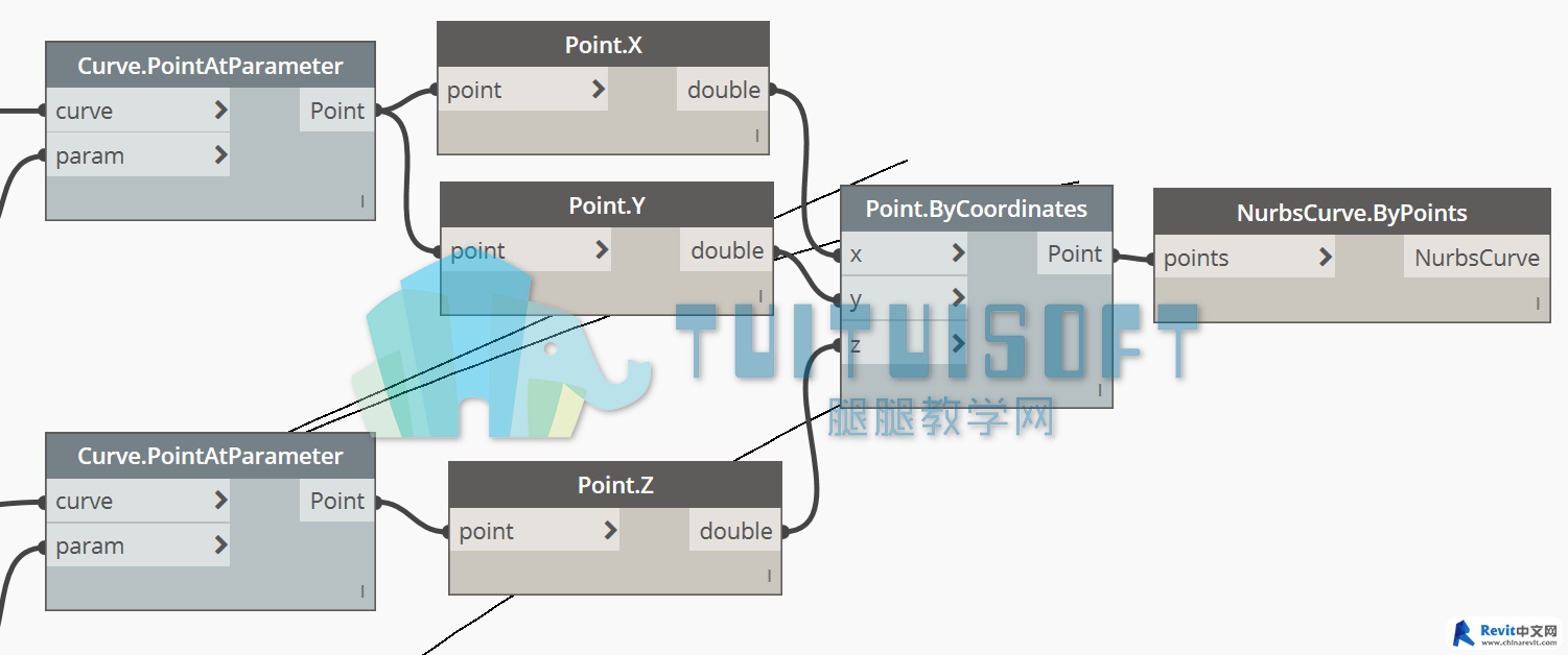 首先通過節(jié)點Curve.PointAtParameter和列表{0..1..0.001}獲取二維曲線上的1001個點。