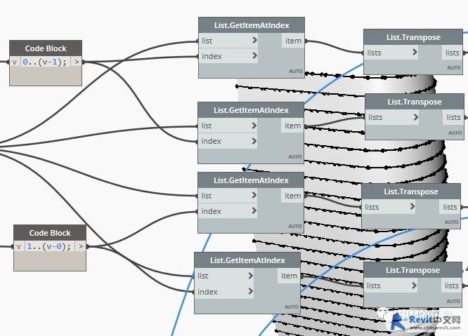首先利用Select Edge節(jié)點(diǎn),選擇頂層和底層樓邊的邊線,分別創(chuàng)建列表,然后轉(zhuǎn)換成PolyCurve