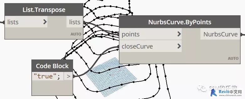 (1)接下來我們利用Curve.PointAtParameter節(jié)點(diǎn),將五邊形等分,為了能夠使五邊形的端點(diǎn)變圓滑,我們等分的時(shí)候,利用列表,跳過五個角點(diǎn)。