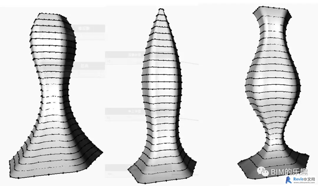 我們之前講過類似的教程,都是先通過創(chuàng)建不同高度的輪廓,然后利用loft創(chuàng)建表皮,然后通過點(diǎn)放置幕墻嵌板族,就能達(dá)到基本要求。