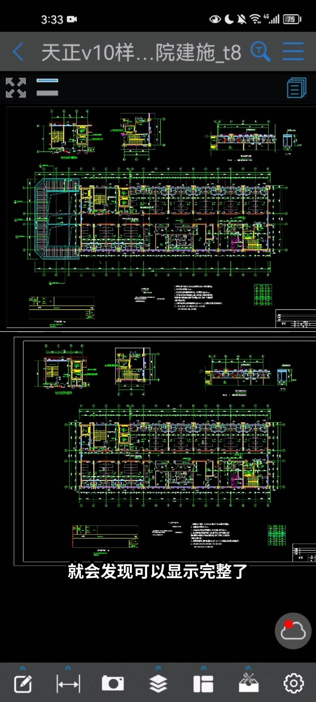 解決方法:同樣是把CAD快速看圖的手機版更新至5.9.9以及更高版本,更新至最新版本后再重新打開圖紙,就能顯示完整啦!