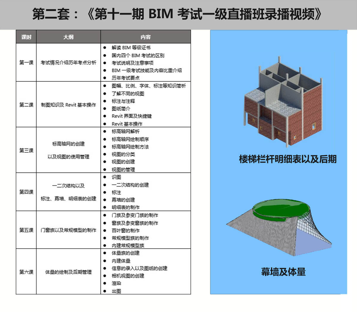 第二套:《第十一期 BIM 技能等級(jí)考試一級(jí)直播班錄播視頻》