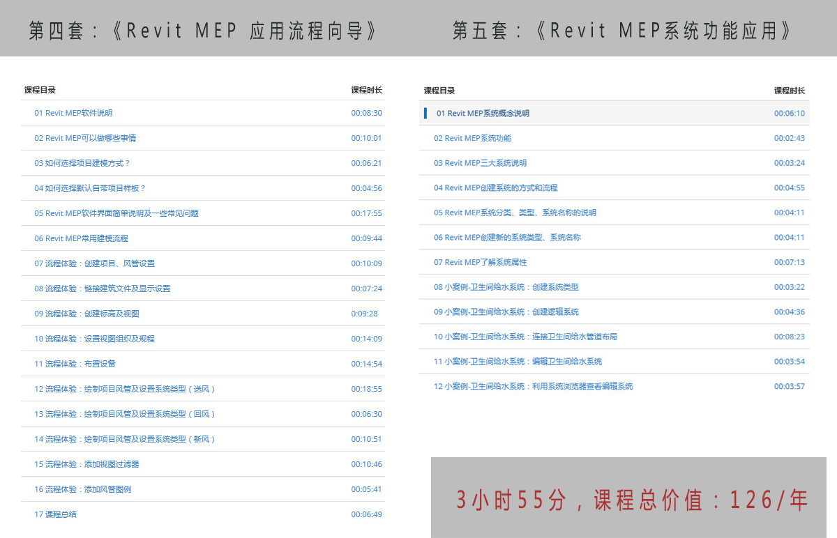 Revit MEP 應用流程向導(MEP入門系列一)》 課程原價:58/年,課程時長:02:58:03