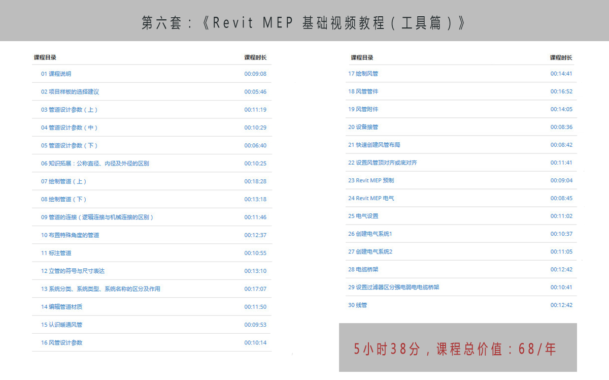 Revit MEP 基礎視頻教程(工具篇)》 課程原價:58/年,課程時長:05:38:28